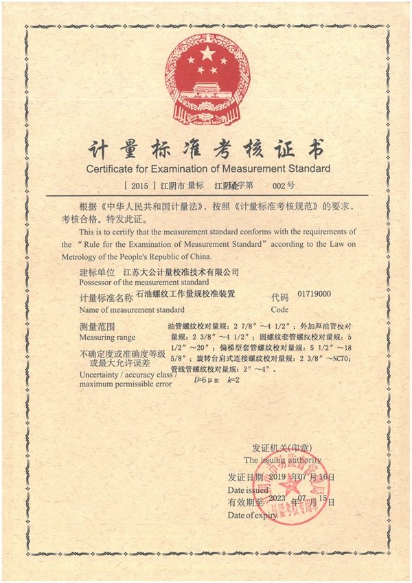 江蘇大公計量校準技術(shù)有限公司是石油螺紋工作量規、石油螺紋單項參數量規、特殊扣螺紋量規的檢測、校準機構!